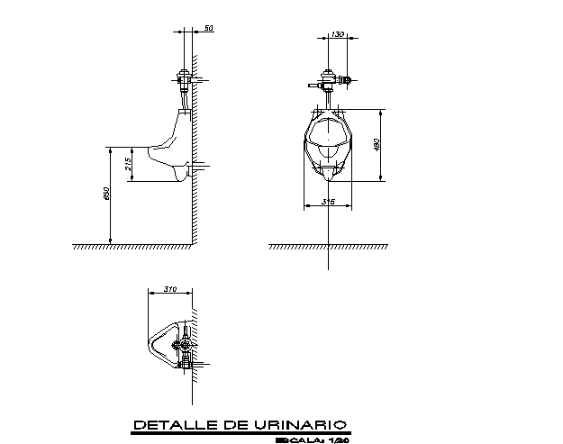 Urinal front sectional detailing, front sectional details of bathroom in auto cad format