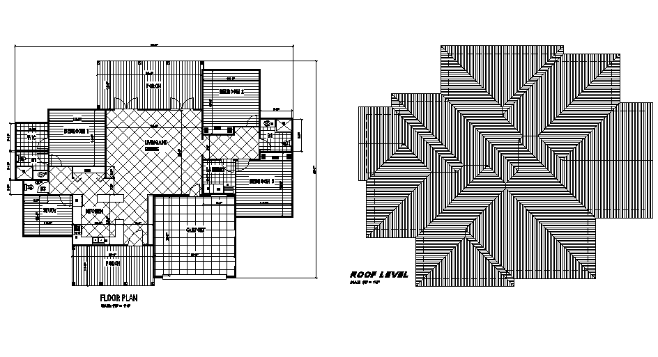 Floor and roof plan layout file, dimension detail, naming detail, furniture detail in door and window detail, toilet detail, cut out detail, tiles detail, roof detail, etc.