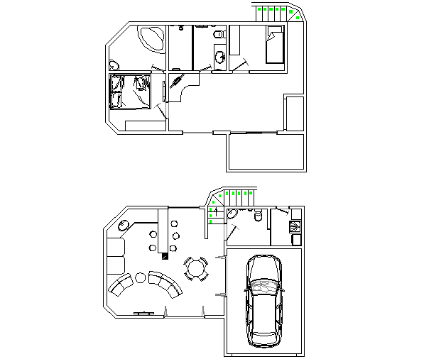 House line plan autocad file, car parking detail, stair detail, furniture detail in table, bed, chair, door and window detail, toilet detail, etc.