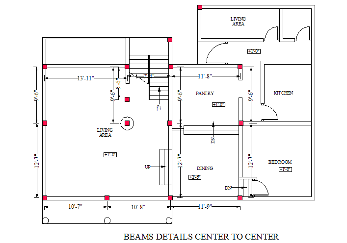 Beam detail centre to centre dimension dwg file, dimension detail, naming detail, leveling detail, furniture detail in door and window detail, etc.