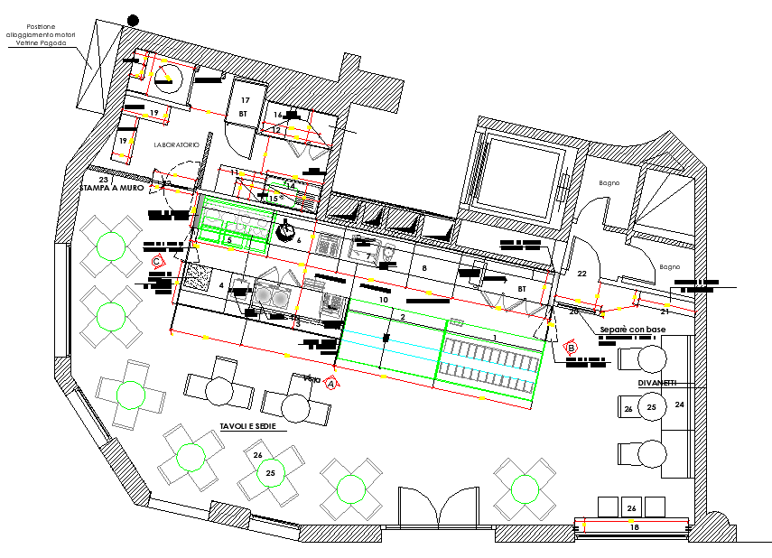 Ice cream shop layout file, diemension detail, naming detail, furnitre detail in table, chair, door and windoe detail, cut out detail, section lien detail, etc.