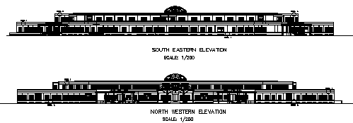 Here the Elevation design drawing of Hospital design drawing with south eastern elevation and north western elevation design drawing in this auto cad file.