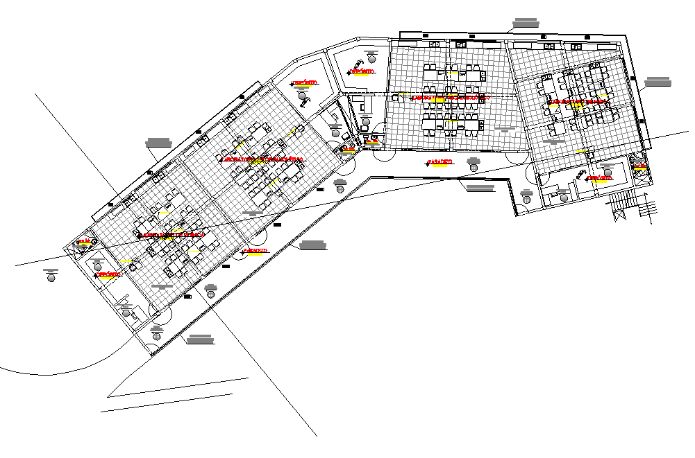 Office plan layout file, section lien detail, naming detail, leveling detail, furniture detail in table, chair, door and window detail, stair detail, toilet detail, etc.