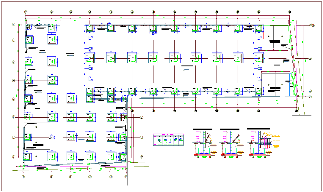 structure view of column view and detail view dwg file in plan with view of area distribution and all