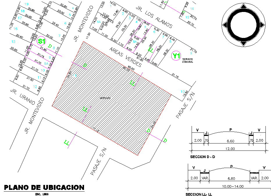 Location site plan detail dwg file, naming detail, north direction detail, hatching detail, section D-D’ detail, section L-L’ detail, section lien detail, dimension detail, etc.