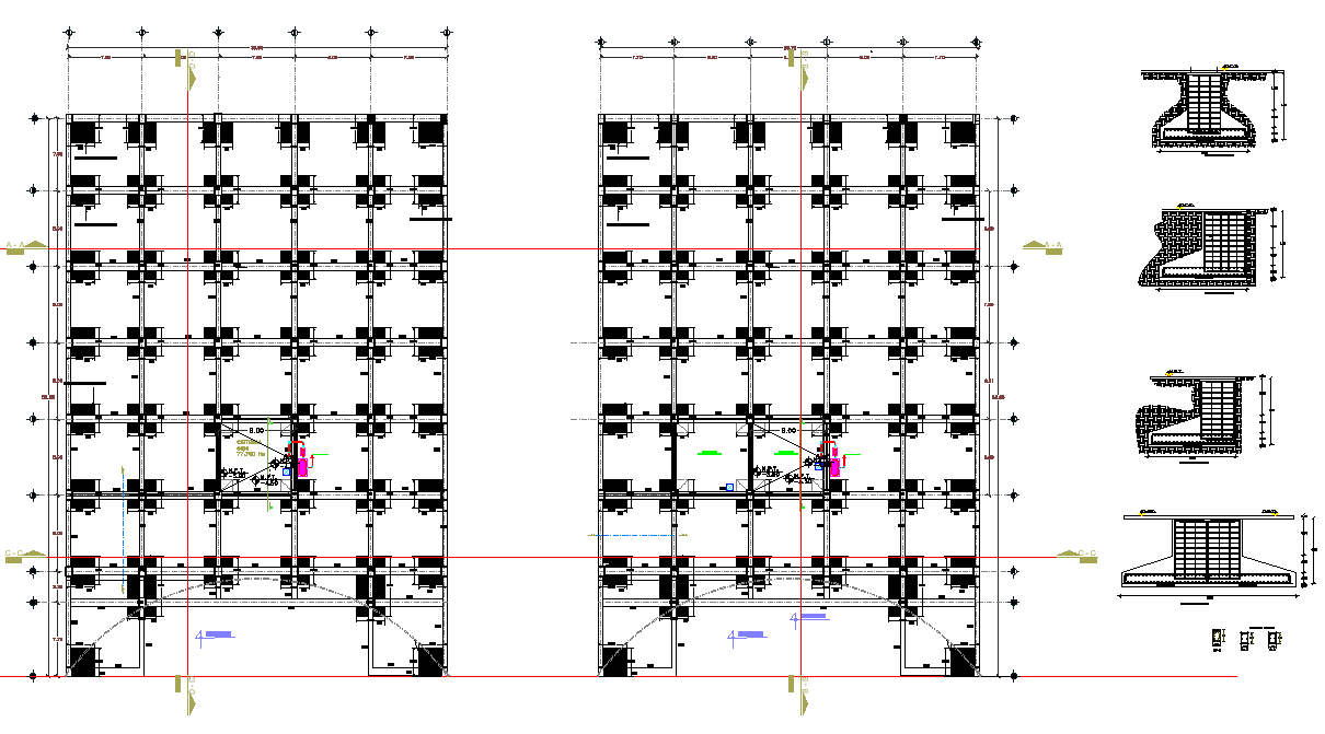 Foundation plan detail dwg file, dimension detail, naming detail, section foundation detail, centre line detail, column section detail, reinforcement detail, leveling detail, etc.