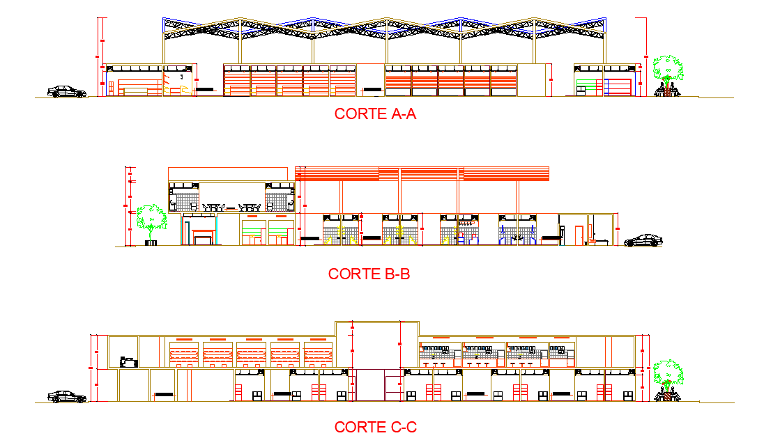 Section Marketer modeling plan layout file, section A-A’ detail, section B-B’ detail, section C-C’ detail, landscaping detail in tree and plant detail, car parking detail, dimension detail, naming detail, etc.