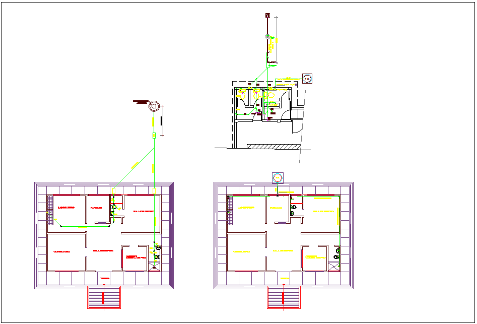 Sanitary installation view of rural medical center dwg file in plan with view of area view with wall,Washing area view with wash tub and drain line view with single pipe line with sanitary installation,detail view with necessary dimension.