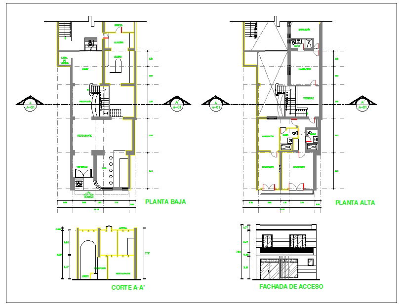 This drawing draw in autocad format The architecture layout plan of all floor detail, parking plan, section plan, elevation plan and interior design of restaurant plan.