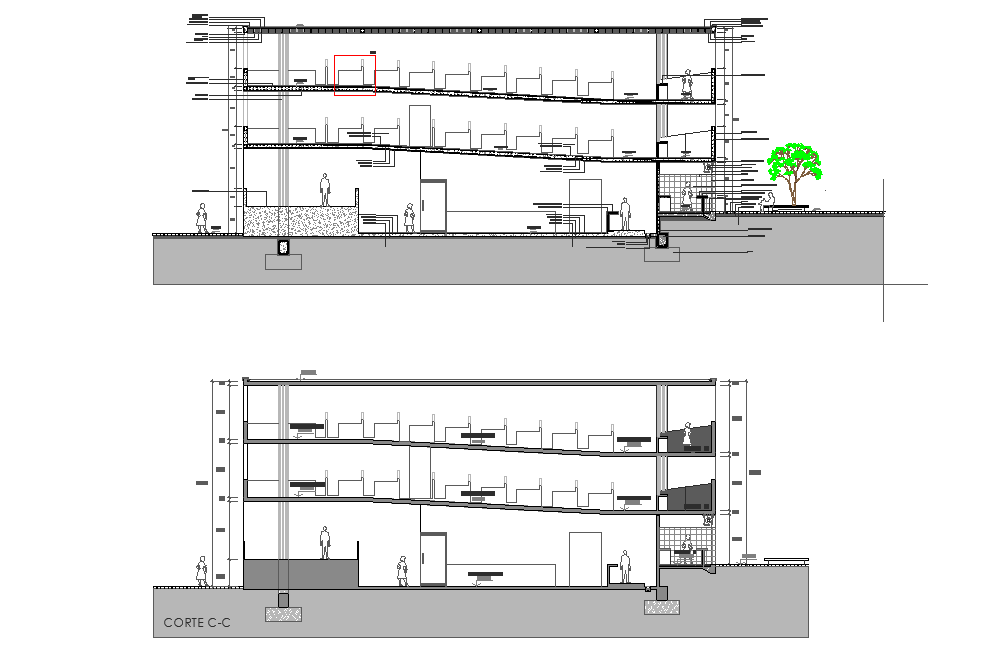 Section market in concrete plan autocad file