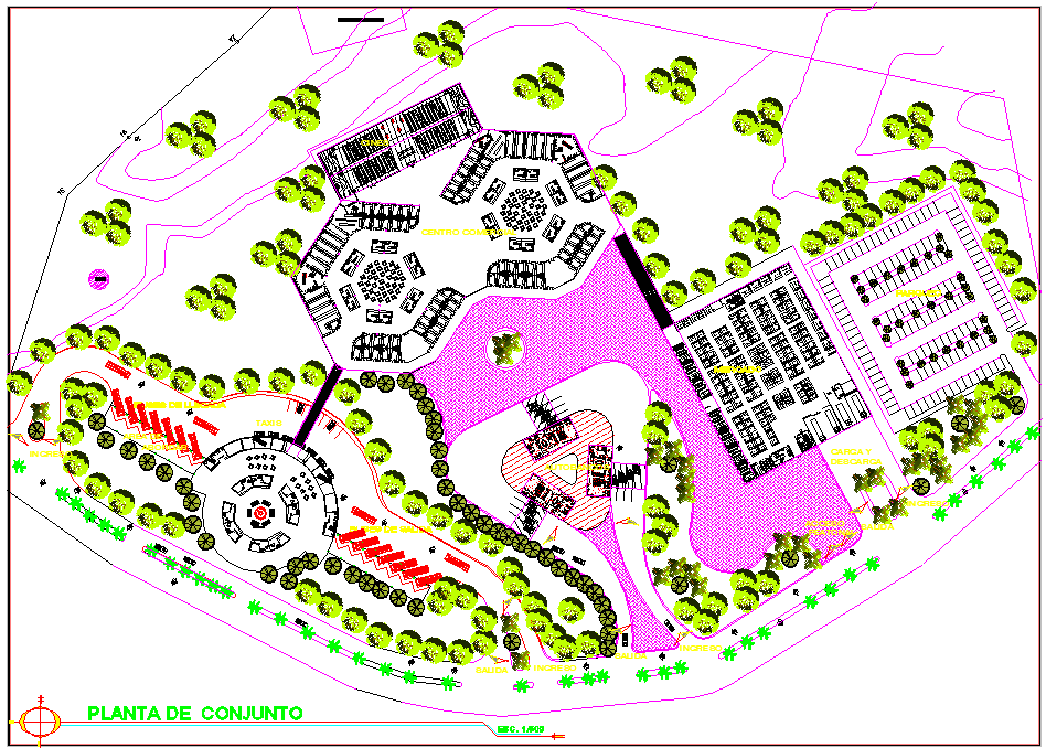 Landscaping plot layout detail dwg file, furniture detail in table, chair, door and window detail, landsceping detail in tree and plant detail, car parking detail, stair detail, etc.