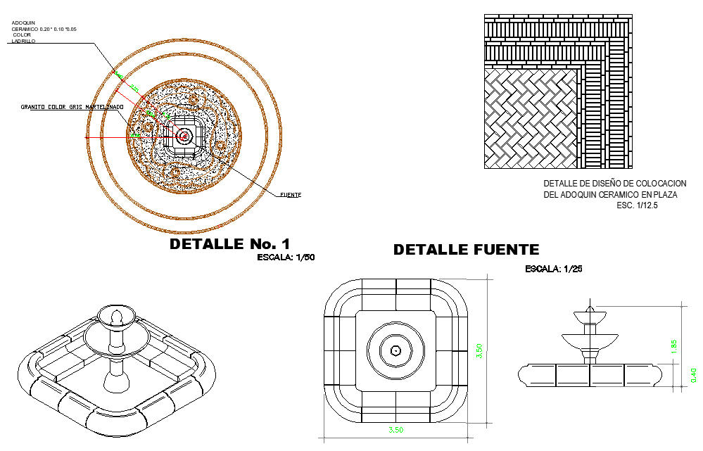 Fountain plan and elevation detail autocad file, diemnsion detail, naming detail, scale 1:12.5 detail, elevation and section detail, etc.