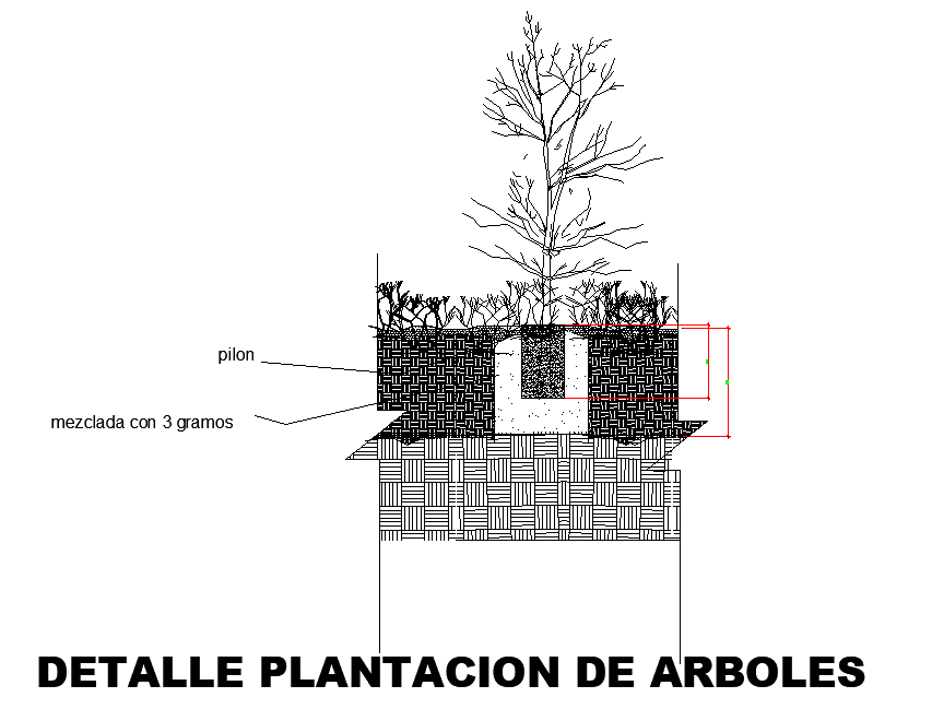 Plantation detail of trees dwg file, namign detail, soil detail, etc.