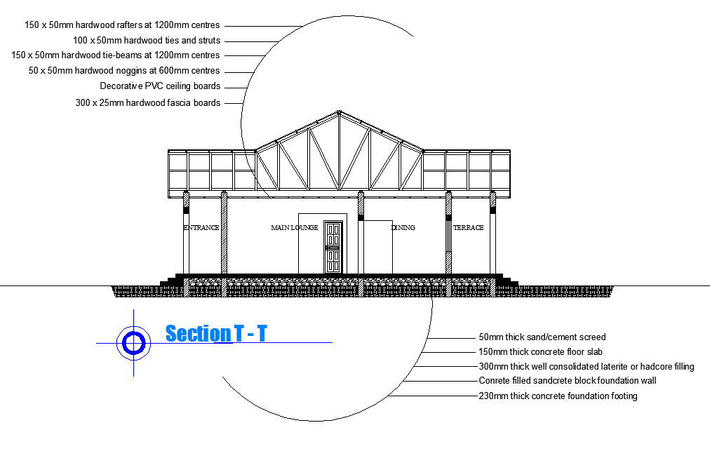 Detail of section house dwg file, naming detail, roof truss detail, furniture detail in door and window detail, etc.