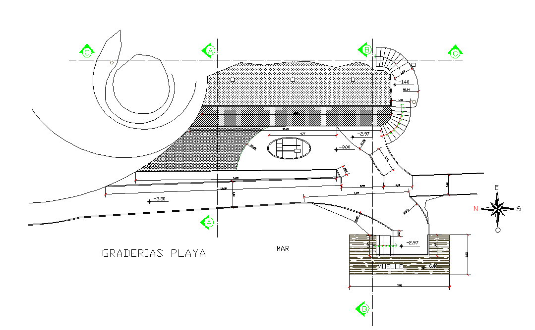 House in tortugas ground floor detail autocad file, section line detail, diemnsion detail, stair detail, north direction detail, etc.