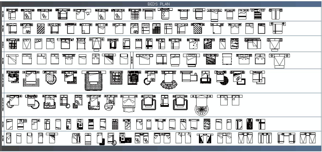 200 high quality CAD Blocks of beds in plan view: double beds, double size and carpet, single beds AND OTHER.