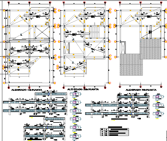 Foundation plan with column and beam of single family house that includes a detailed view of foundation plan, column view, beam vies, steps details, concrete floor view, material details, measure, railing and much more of house construction details.