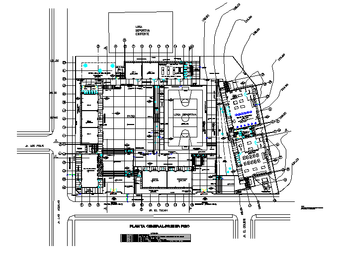 Commercial plaza architectural plan, layout plan of a site dwg file, here this auto cad file contains top view layout plan of a site, showing plantation , basket ball court design