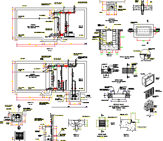 Sanitary facilities details of multi-family house project that includes a detailed view of sanitary sections, plumbing details, equipment details, doors and ventilation, constructive details and much more of sanitary facilities.