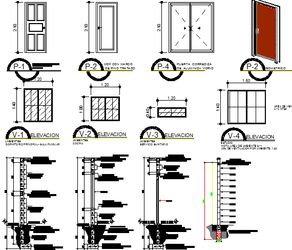 Doors and window installation details of house that includes a detailed view of window and door railings, frame, window elevation, doors elevation, supportive frame view, 3d view of door and much more of doors and window details.