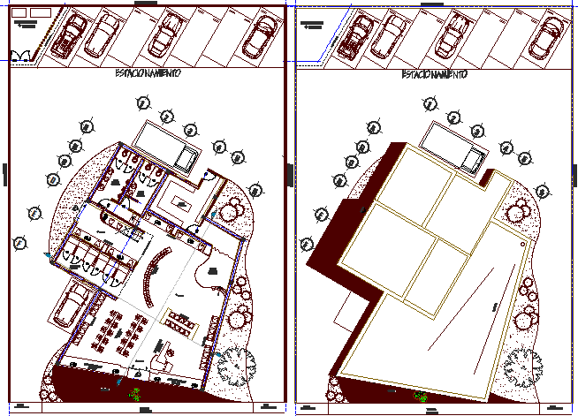 City boutique architecture layout plan that includes a detailed view of mini garden, car parking view, green area, waiting area, reception and billing, store, toilets and bathroom and much more of boutique project.