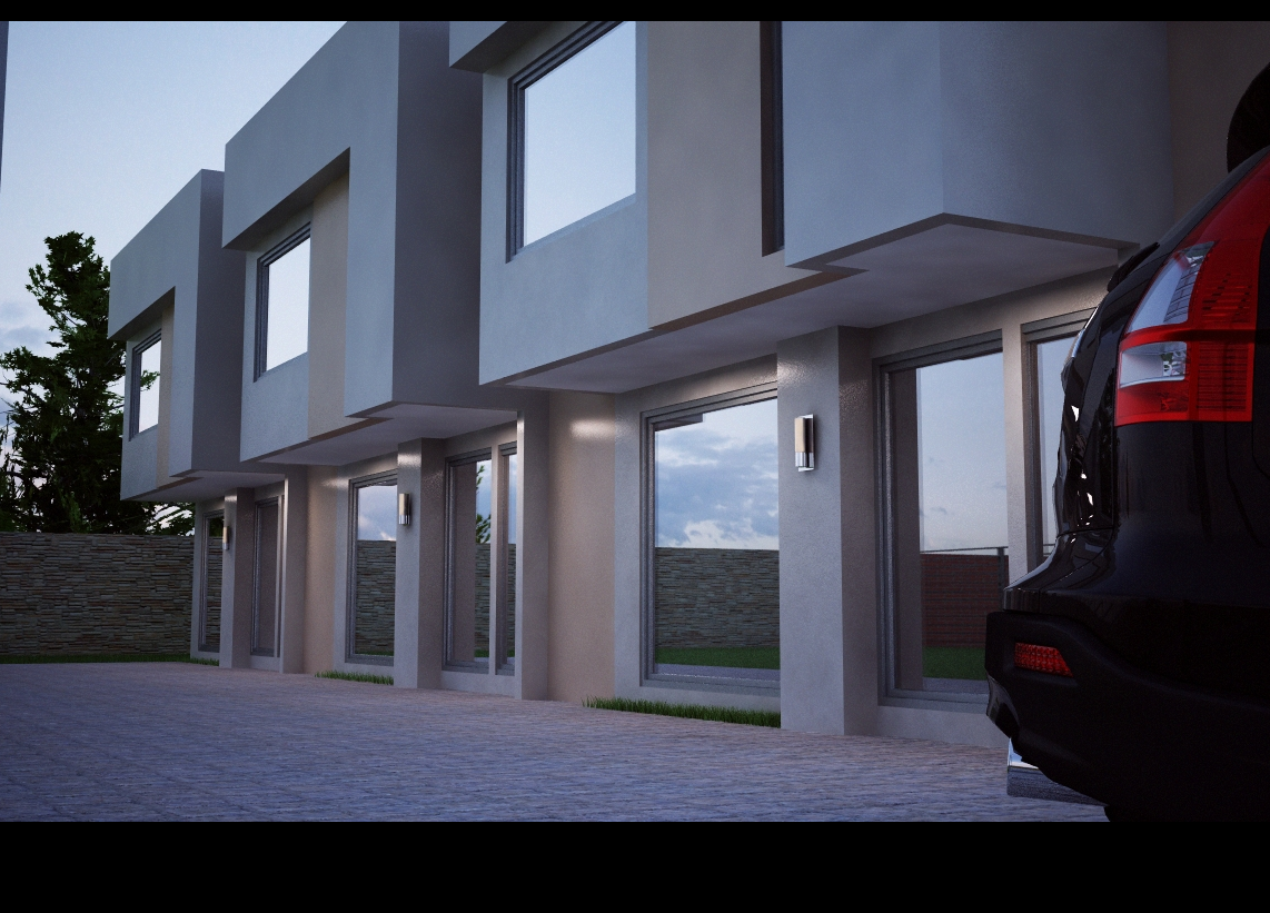 Twin banglow 3d drawing file with front elevations of facade ,with glass doors and window details, flooring,boundries ,landscaping etc.