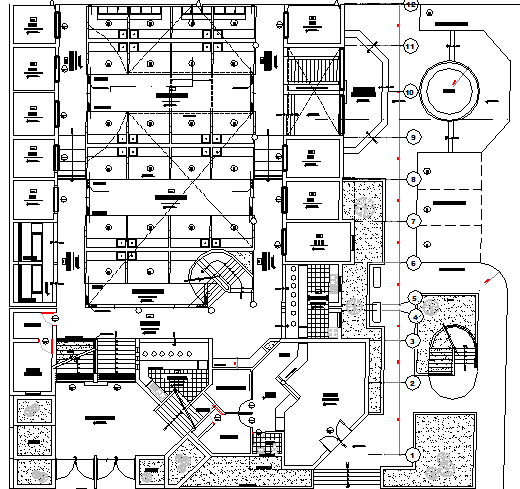 Layout structure details of processing industrial plant that includes a detailed view of reception area, waiting area, inquiry desk, cafeteria, offices, employee offices, dining area, head offices, staff room, meeting room, conference hall and much more of floor plan details.