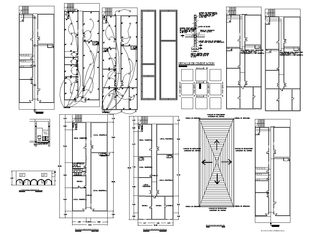Commercial center dwg file. with foundation section plan, column section detail, technical specifications, main entry gate, construction plan etc autocad format.