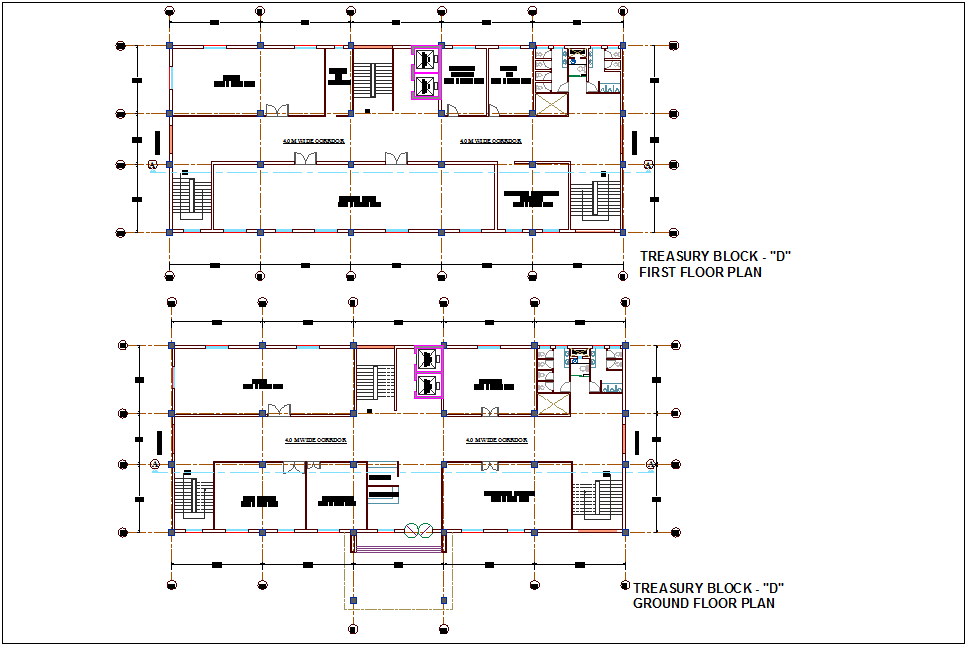 Treasury block D ground and first and ground floor plan for administration building dwg file