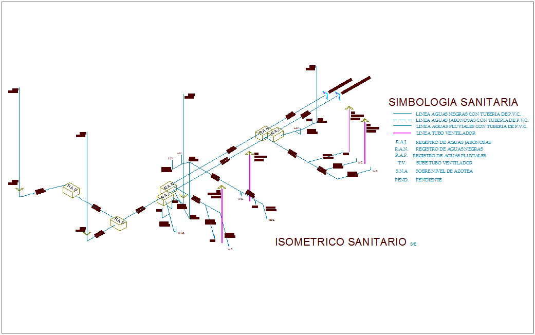 Isometric view of sanitary with washing water line view for municipal agency dwg file