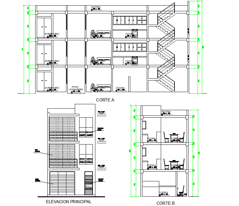 Living place section and elevation plan dwg file