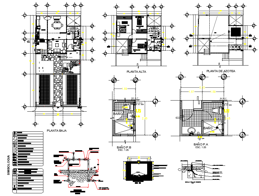 House planning autocad file, centre line detail, dimension detail, naming detail, furniture detail in sofa, table, chair, door and window detail, stone detail, legend detail, etc.