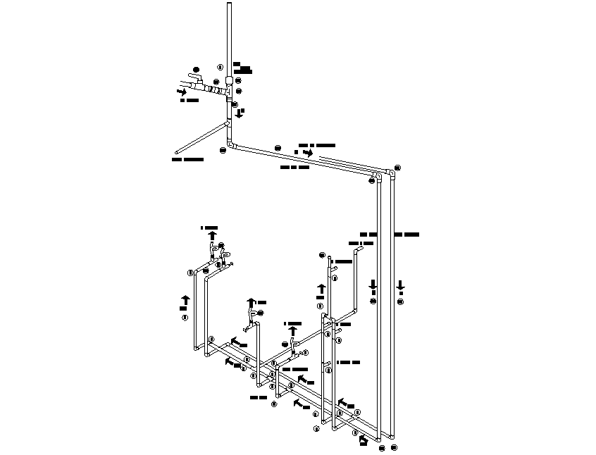 Water pipe line detail autocad file, naming detail, numbering pipe detail, albow detail, etc.
