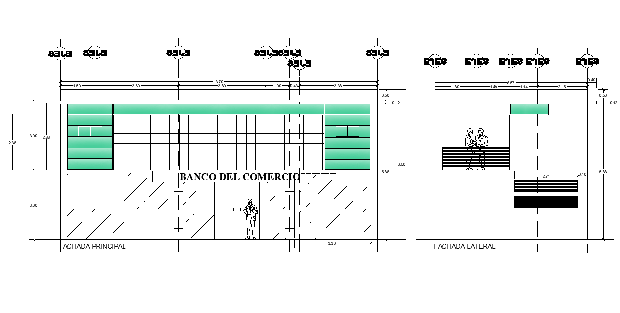 Detail of elevation house dwg file, centre line plan detail, dimension detail, front elevation detail, side elevation detail, etc.