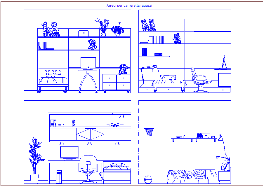 Detail of interior view dwg file in detail view with view of cupboard with designer view of flower pot,