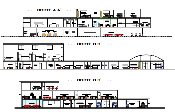 Here the Section design drawing of Hospital design drawing with 3 types section design drawing with all detailing mentioned in this auto cad file.