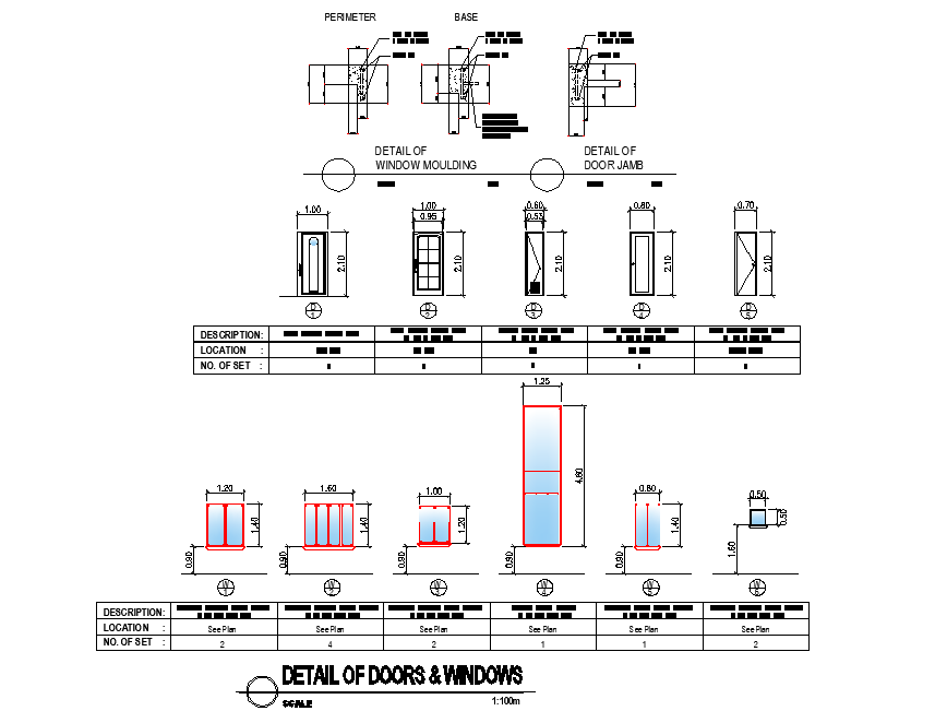 Detail of door and window dwg file, detail of window moulding, detail of door jump, dimension detail, naming detail, door numbering detail, etc.