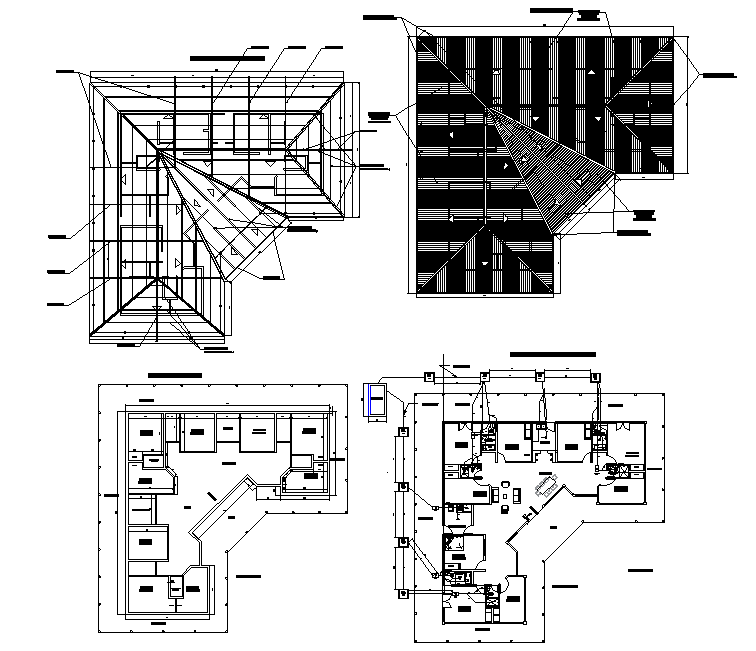 Ground floor to roof house plan autocad file, dimension detail, naming detail, furniture detail in table, chair, door and window detail, etc.