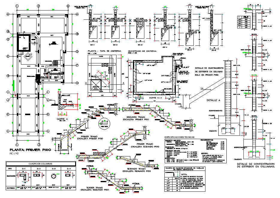 Structural building section plan detail dwg file, stair section detail, foundation plan and section detail, dimension detail, column section table specification detail, centre lien plan detail, reinfrocement detail, bolt nut detail,etc.