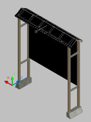 It has a dwg of a simple notice board in 3d autocad. It has steel plates, a simple roof like structure.
