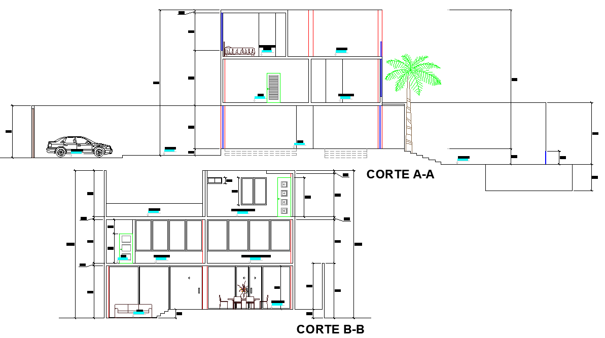 Section beach house 3 floors plan autocad file, section A-A’ detail, section B-B’ detail, dimension detail, naming detail, car parking detail, furniture detail in door and window detail, landscaping detail in tree and plant detail, leveling detail, etc.