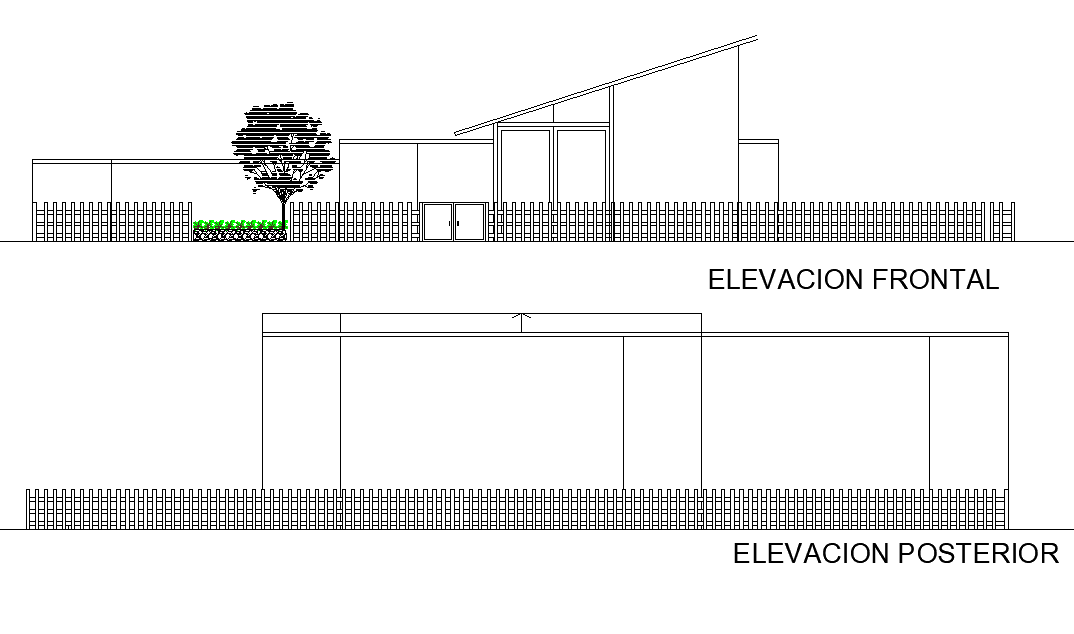 Detail of elevation dwg file, front elevation detail, side elevation detail, landscaping detail in tree and plant detail, furniture detail in door and window detail, etc.