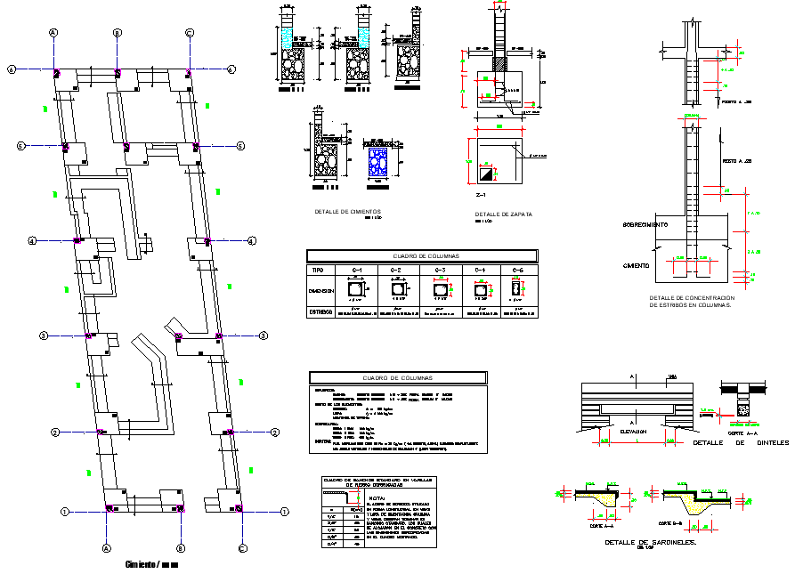Foundation plan and section detail autocad file, reinforcement detail, bolt nut detail, dimension detail, column section detail, centre line detail, section line detail, specification detail, etc.
