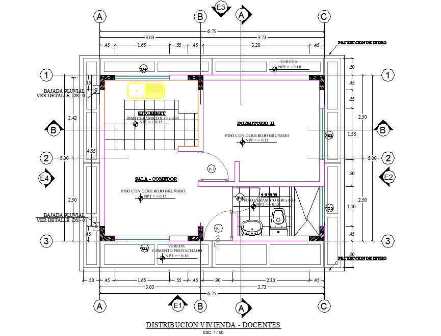 House plan detail dwg file, centre line detail, dimension detail, leveling detail, cut out detail, furniture detail in door and window detail, scale 1:50 detail, etc.