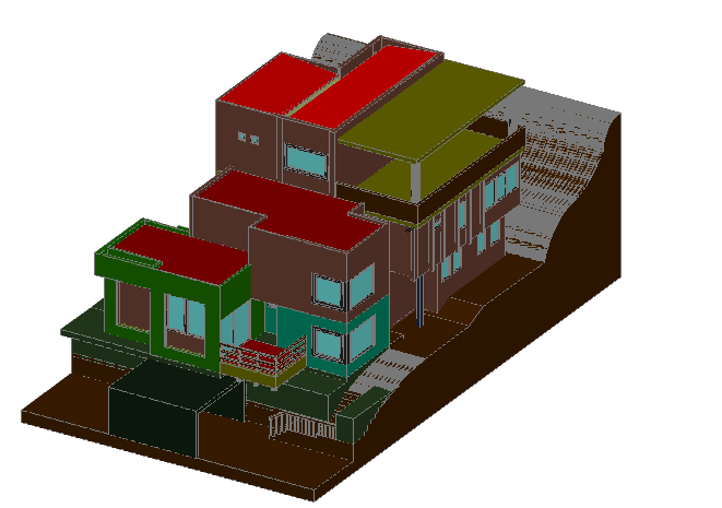 3D hill side home details, elevation of a bungalow dwg file, this auto cad file contains elevation of a bungalow, modern bungalow design, posh design, luxurious design etc