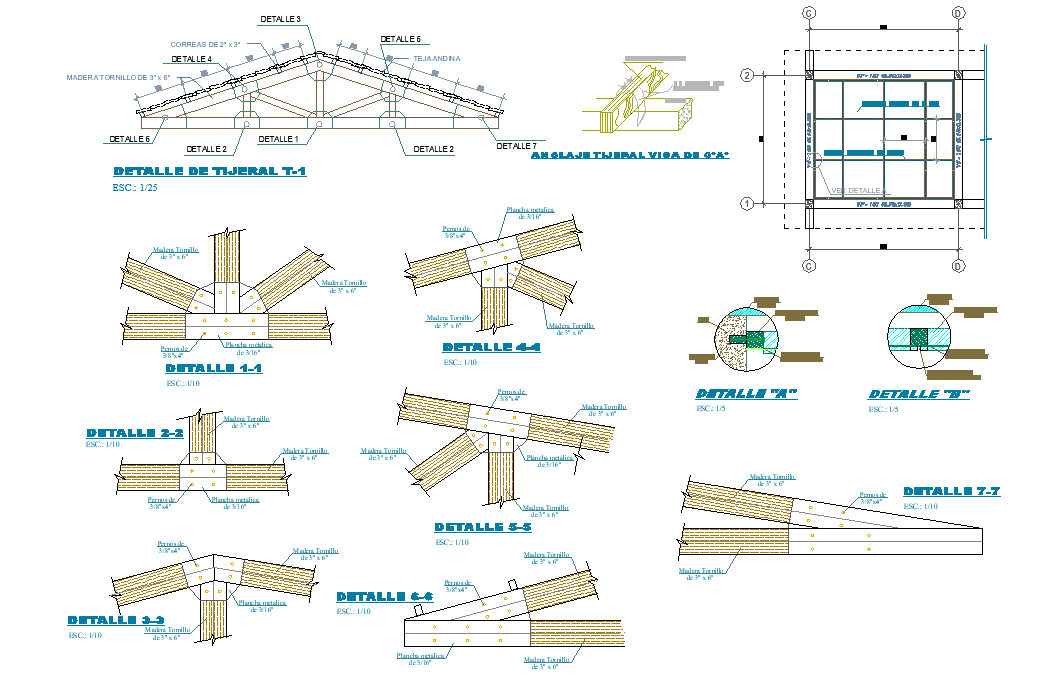 King post Section roof plan detail dwg file