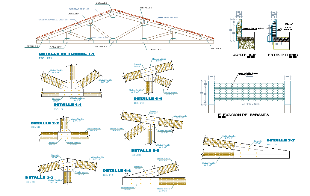 Truss section detail autocad file, section X-X’ detail, front elevation detail, reinforcement detail, dimension detail, naming detail, bolt nut detail, etc.