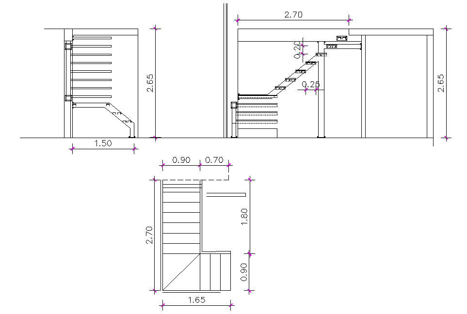 Stair plan and section plan layout file, dimension detail, naming detail, riser and tread detail, etc.