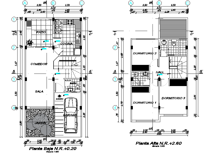 House plan detail dwg file, scale 1:50 detail, landscaping detail in tree and plant detail, dimension detail, section lien detail, naming detail, furniture detail in door and window detail, etc.