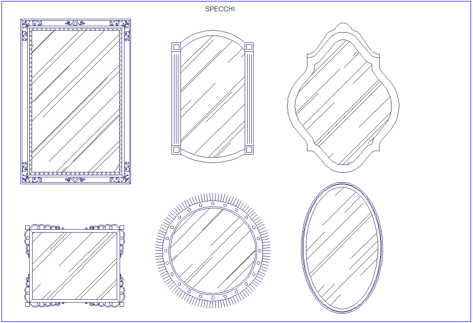 Different logo and symbol of mirror dwg file in view of different shape and size mirror view like a